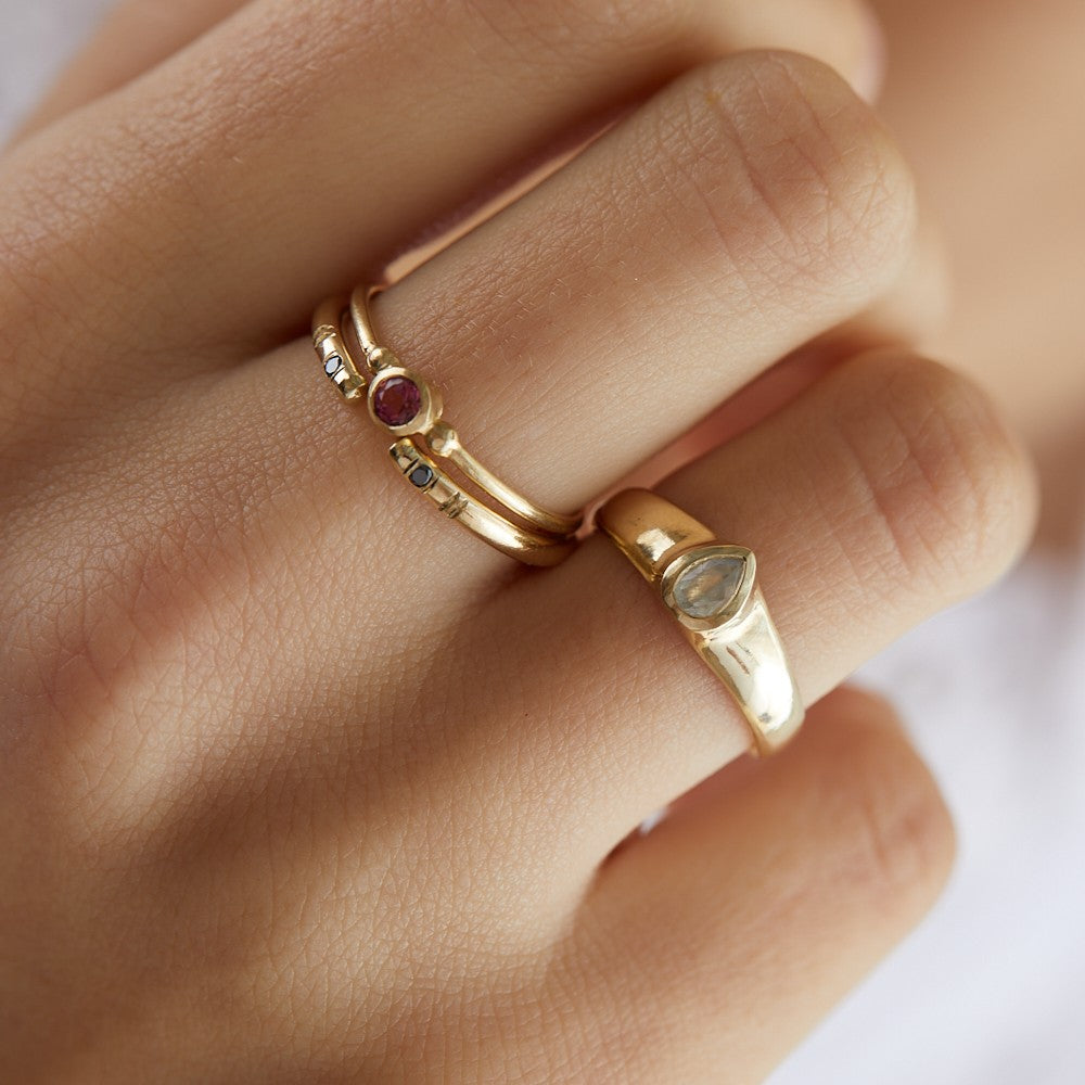 טבעת זהב 14 קראט משובצת אבן לבחירתך: רובי/טורמלין ורוד/יהלום/ספיר/ספינל שחורה/אמרלד