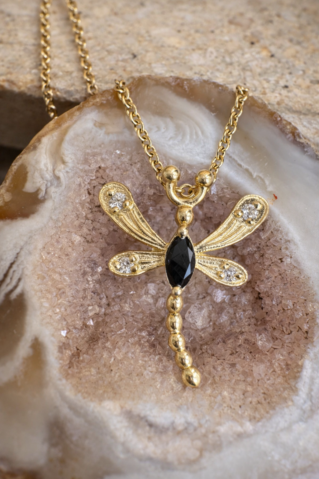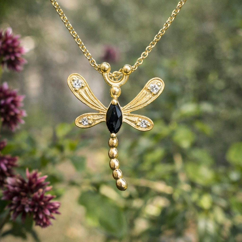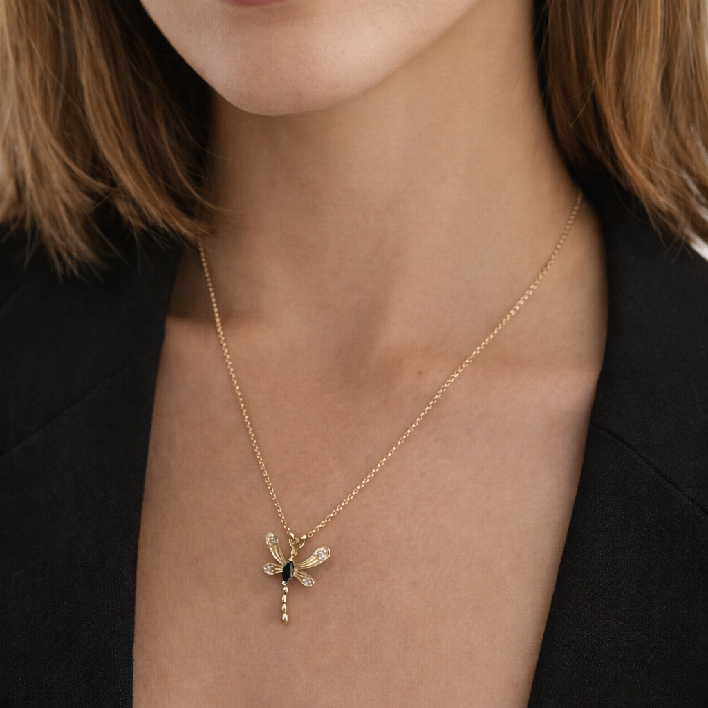 התליון משובץ יהלום שחור ויהלומים לבנים
