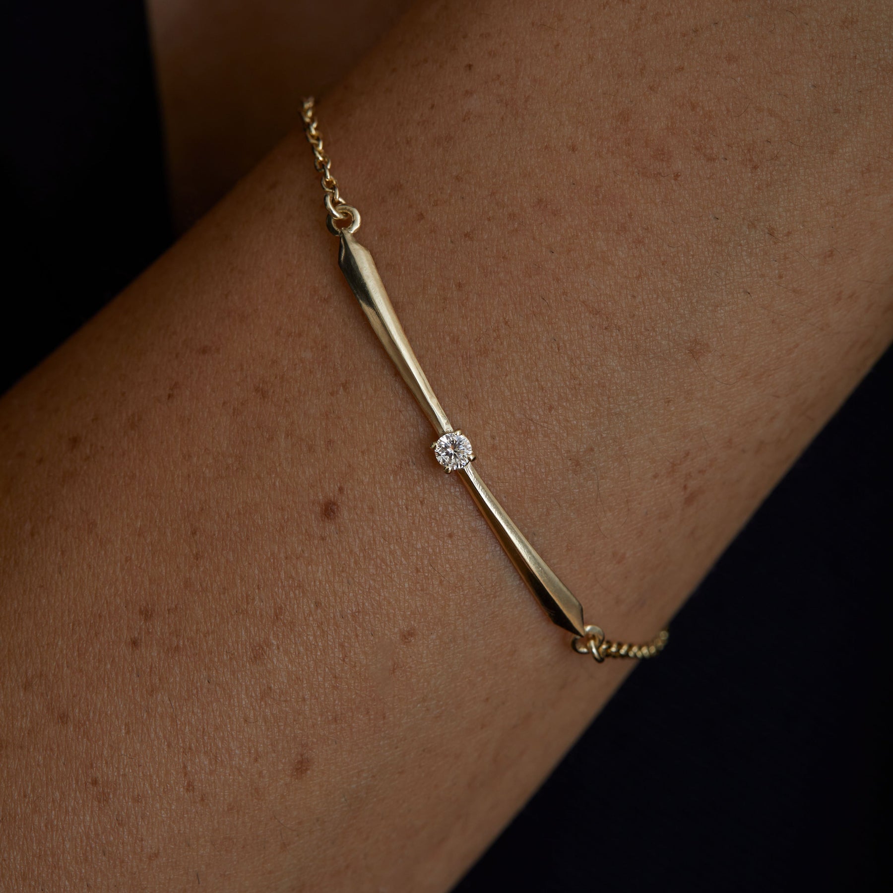 המרכז החוליה משובץ יהלום לבן יפייפה שמקפיץ את מראה הצמיד